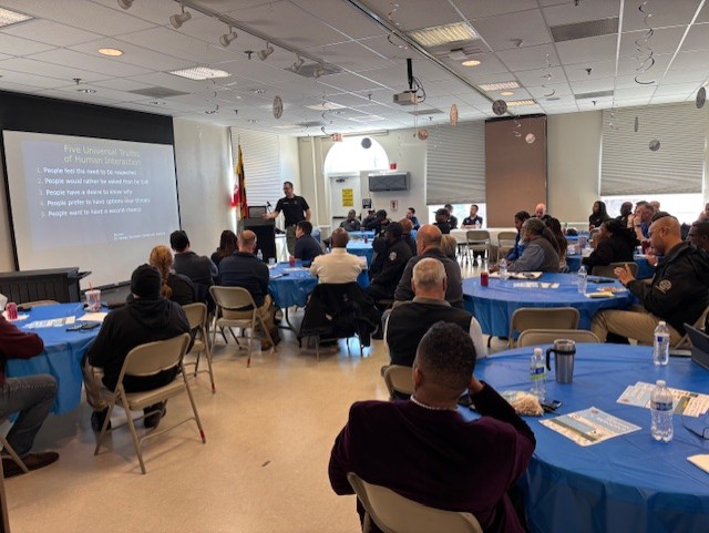 Hyattsville provided the speaker for the training session. A/Lt. Nemser is a certified instructor for the Hyattsville Police Department. The training came from a program called ICAT – Integrated Communications, Assessment, and Tactics.